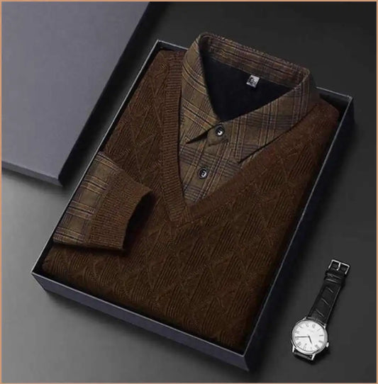 CARVELLI-Pull Chemise tricoté au style raffiné pour hommes